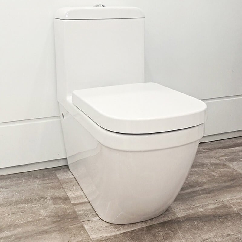 - Chân bồn cầu bo tròn, két nước tối giản, giúp hạn chế vi khuẩn, mảng bám, dễ dàng vệ sinh.