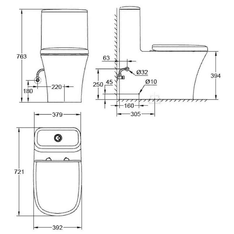 4. Bản vẽ kỹ thuật bồn cầu 1 khối 39310000