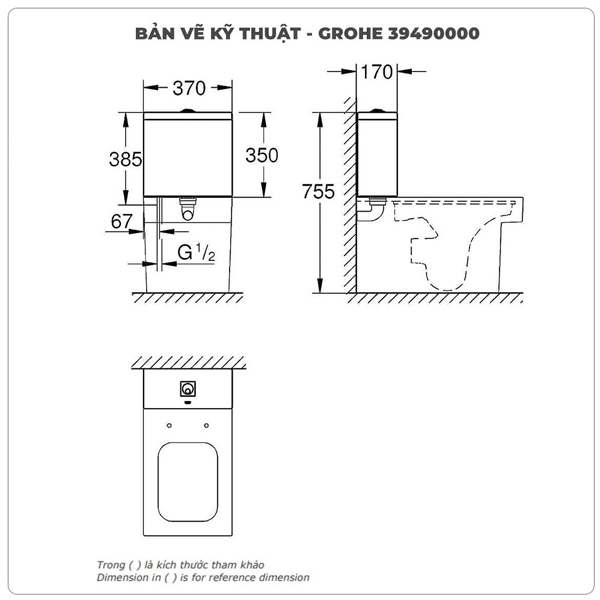 - Két nước bồn cầu GROHE 2 khối 39490000 được đóng gói hoàn thiện với tem dán chính hãng từ thương hiệu, phiếu bảo hành và phiếu thông tin;