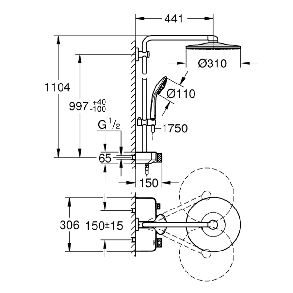 Qua bản vẽ kỹ thuật sen cây nhiệt độ Grohe Euphoria SmartControl 310 Duo 26507000 bạn có thể biết được kích thước và hình dáng của sản phẩm, giúp cho việc lựa chọn sản phẩm phù hợp với không gian và style của ngôi nhà trở nên dễ dàng hơn.