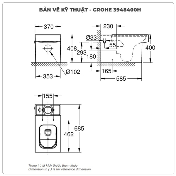 - Thân bồn cầu GROHE 2 khối 3948400H được đóng gói hoàn thiện với tem dán chính hãng từ thương hiệu, phiếu bảo hành và phiếu thông tin;
